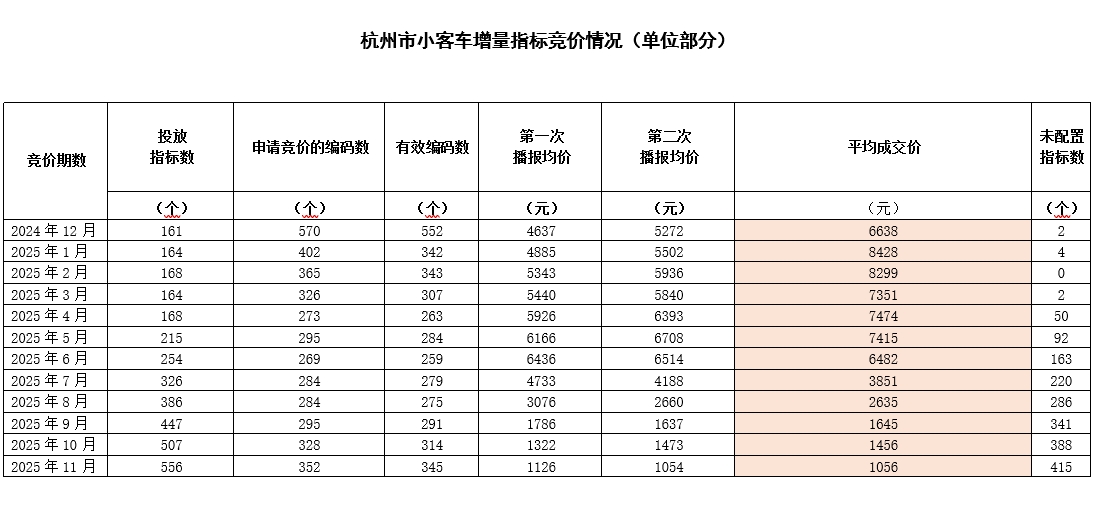 杭州市小客车增量指标竞价情况表