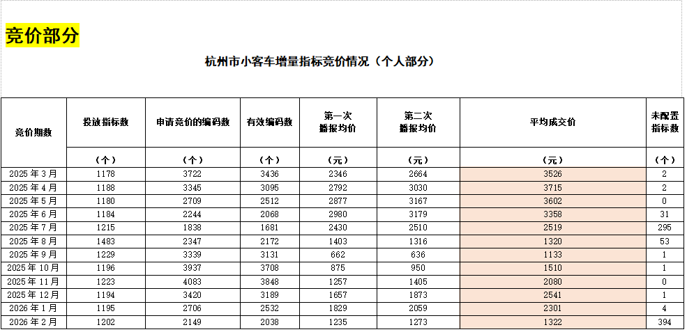 杭州市小客车增量指标竞价情况表