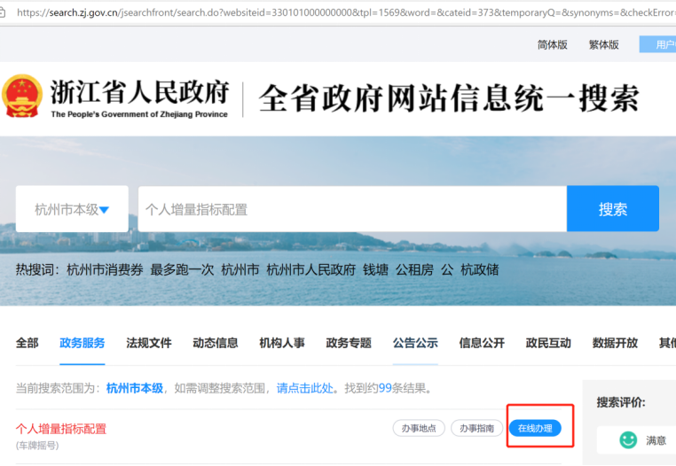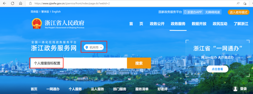 “杭州市”,并在首页的搜索框内直接输入“个人增量指标配置”