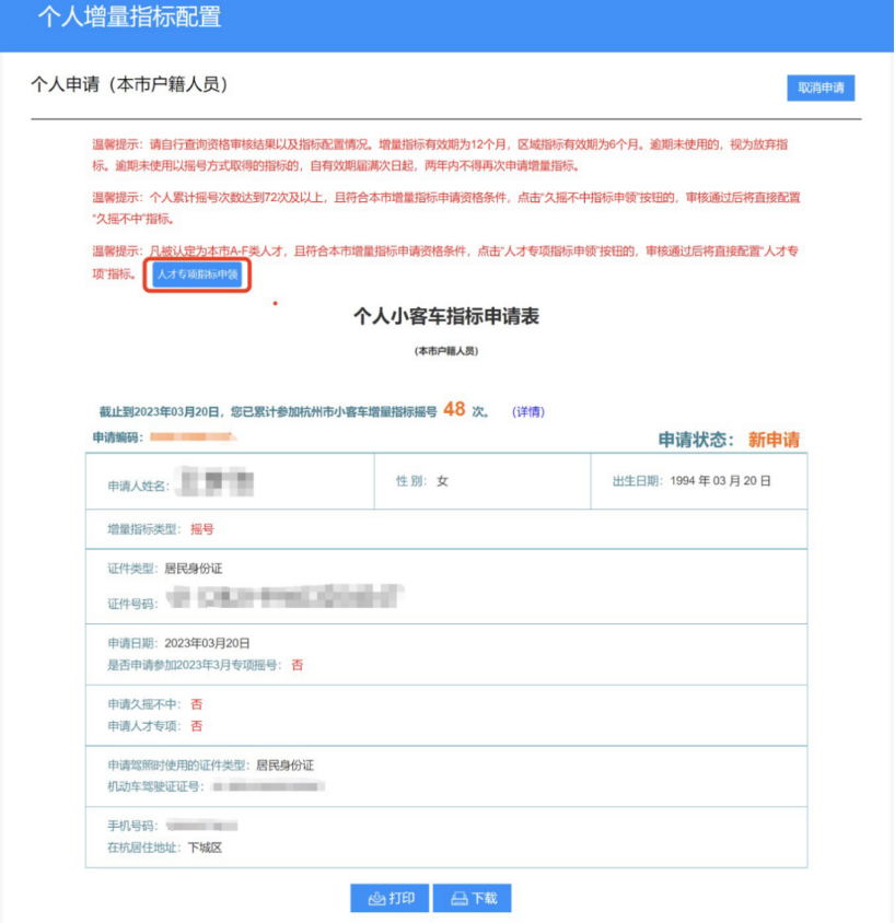 “人才专项指标申领”,“申请表”中“申请人才专项”将显示为“是”