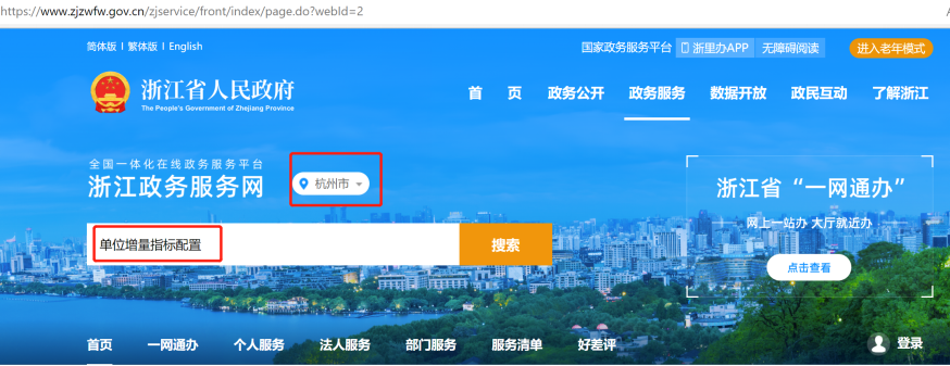 “杭州市”,并在首页的搜索框内直接输入“个人增量指标配置”