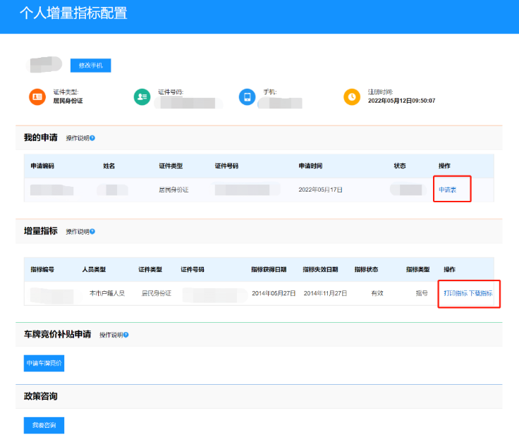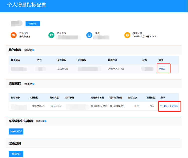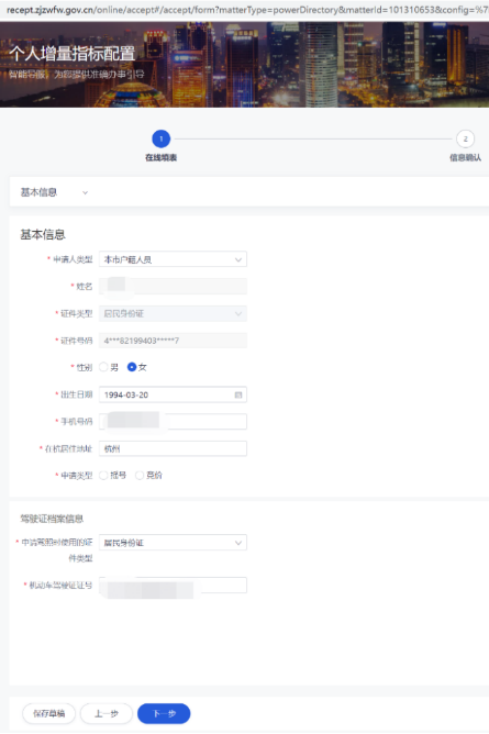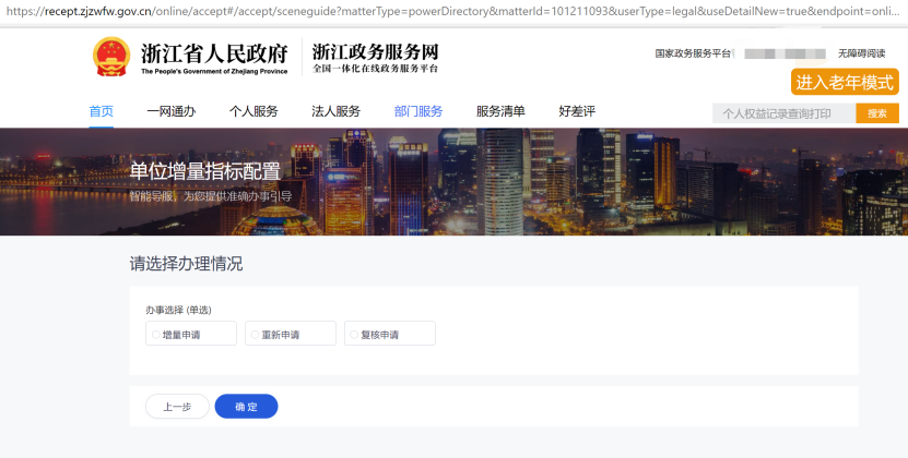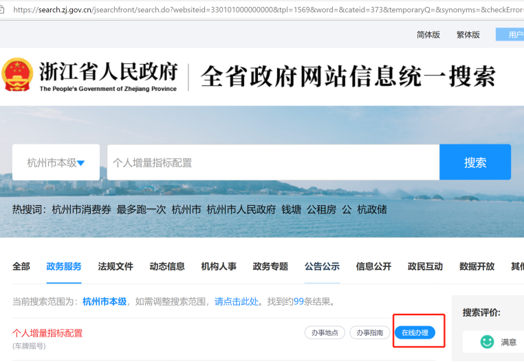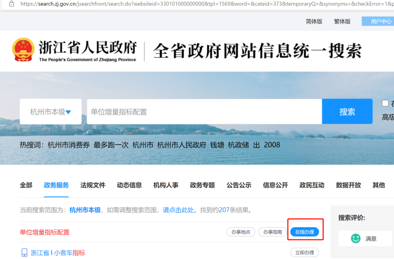 第六步:提交成功后,如果您想重新办理业务或者查询相关信息,个人的请重新进入“个人增量指标配置”事项,单位的请搜索“单位小客车指标综合服务”事项,即可查看申请记录和相关信息