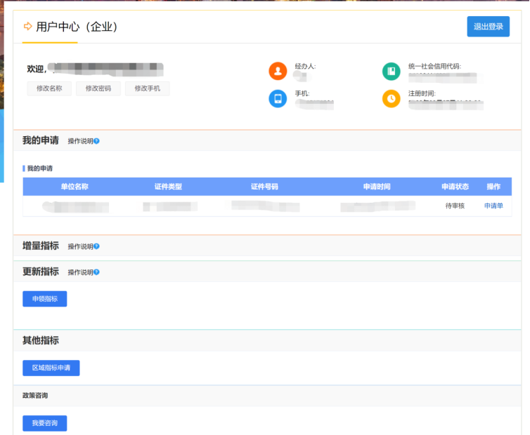 第五步:填写相关的申请信息,确认无误后提交即可(注意:请选择是否申请区域指标、增量指标及增量指标类型)