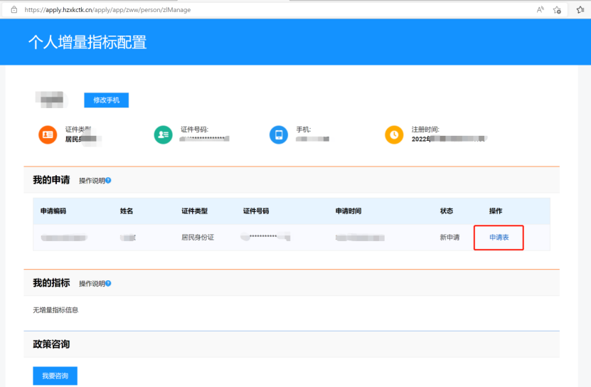 第二步:点击搜索后,再点击“个人增量指标配置”的“在线办理”