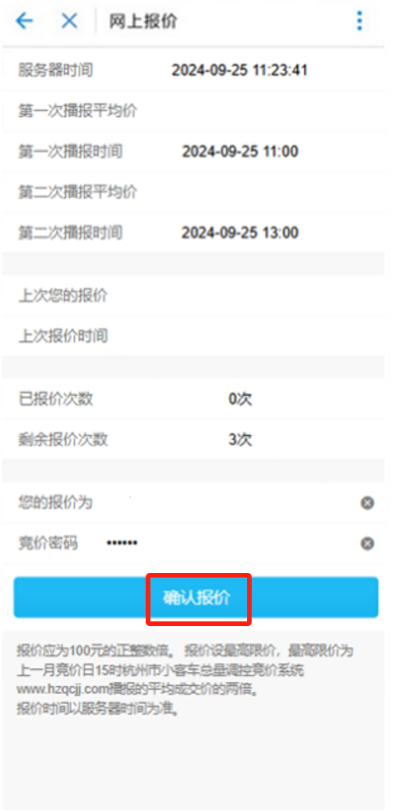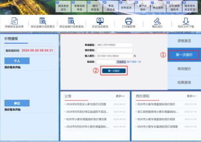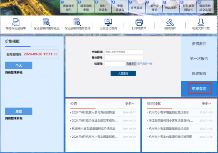 在竞价官网(www.hzqcjj.com)进行报价,如需更改报价,可点击“修改报价”。竞价时间截止后,可点击“结果查询”查看成交结果。