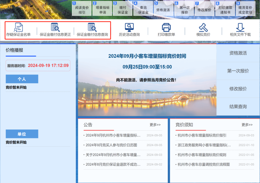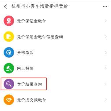 在缴付竞价保证金2小时后,在竞价官网(www.hzqcjj.com)查询竞价保证金缴付情况。点击“保证金缴付信息查询”(通过支付宝缴纳保证金的个人仍可通过支付宝生活号查询):