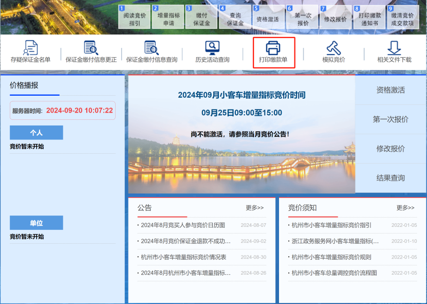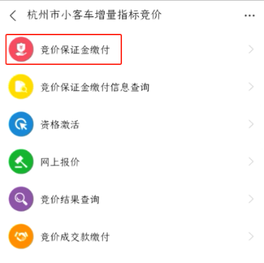个人:通过支付宝搜索“浙A牌照指标竞价”生活号,点击“竞价活动服务”,选择“竞价保证金缴付”(在每期增量指标竞价公告规定的截止时间前一日23:00前缴付竞价保证金)。或通过银行柜台转账、网上银行转账、杭州银行直销银行缴付、现金缴付保证金。