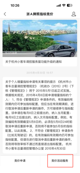 请确认本月增量指标申请时将“申请类型”选择为“竞价”,并通过竞价官网(www.hzqcjj.com)查看竞价日历图和竞价公告。